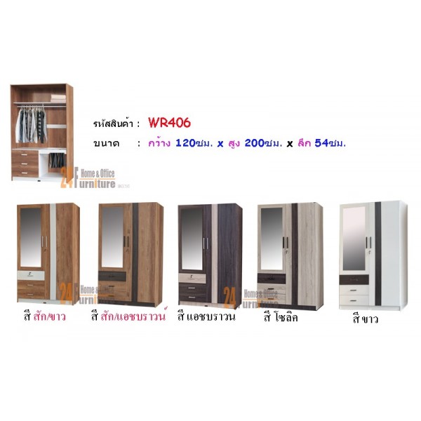 WR406 : ตู้เสื้อผ้า 120 ซม. 1 บานกระจก 3 ลิ้นชัก